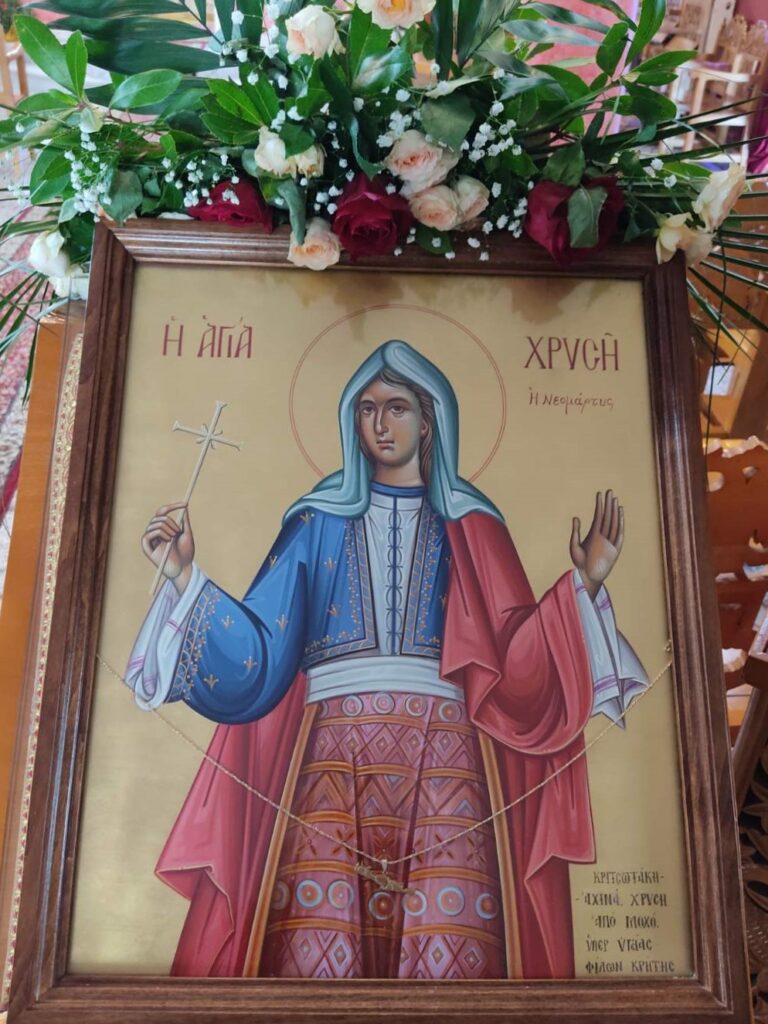Με Αρχιερατική συγχοροστασία την παραμονή και Αρχιερατικό συλλείτουργο την κυρίως ημέρα εορτάσθηκε η ετήσια μνήμη της αγίας νεομάρτυρος Χρυσής (+1795) στον πανηγυρίζοντα φερώνυμο ιερό ναό στο χωριό Χρυσή Αλμωπίας, τόπο καταγωγής και μαρτυρίου της Αγίας.