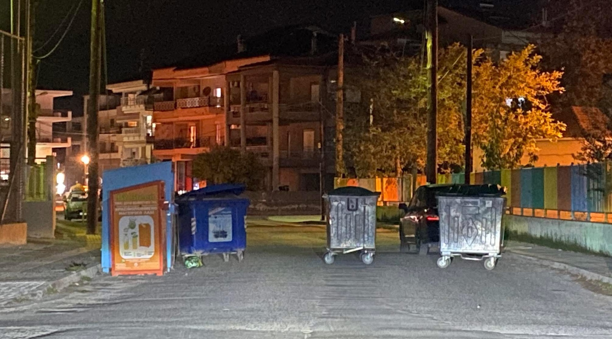 Σύμφωνα με ανάρτηση στα μέσα κοινωνικής δικτύωσης, άγνωστοι τοποθέτησαν κάδους απορριμμάτων στη μέση του δρόμου, στο σημείο ανάμεσα στο 2ο και το 3ο Δημοτικό Σχολείο, προκαλώντας έντονη ανησυχία στους κατοίκους της περιοχής.