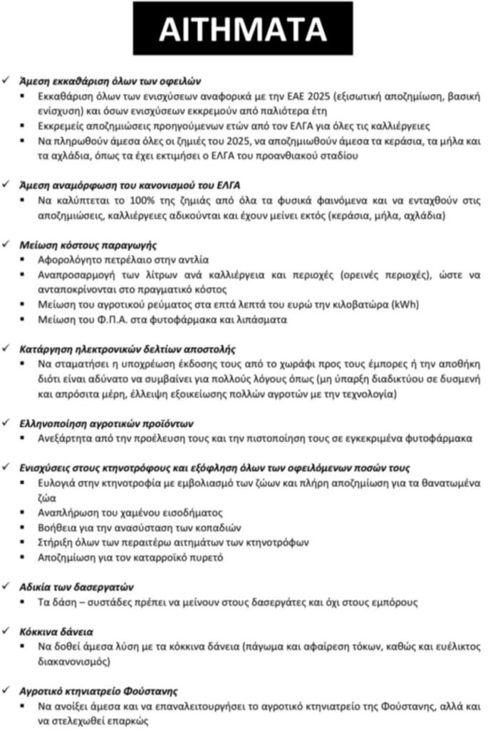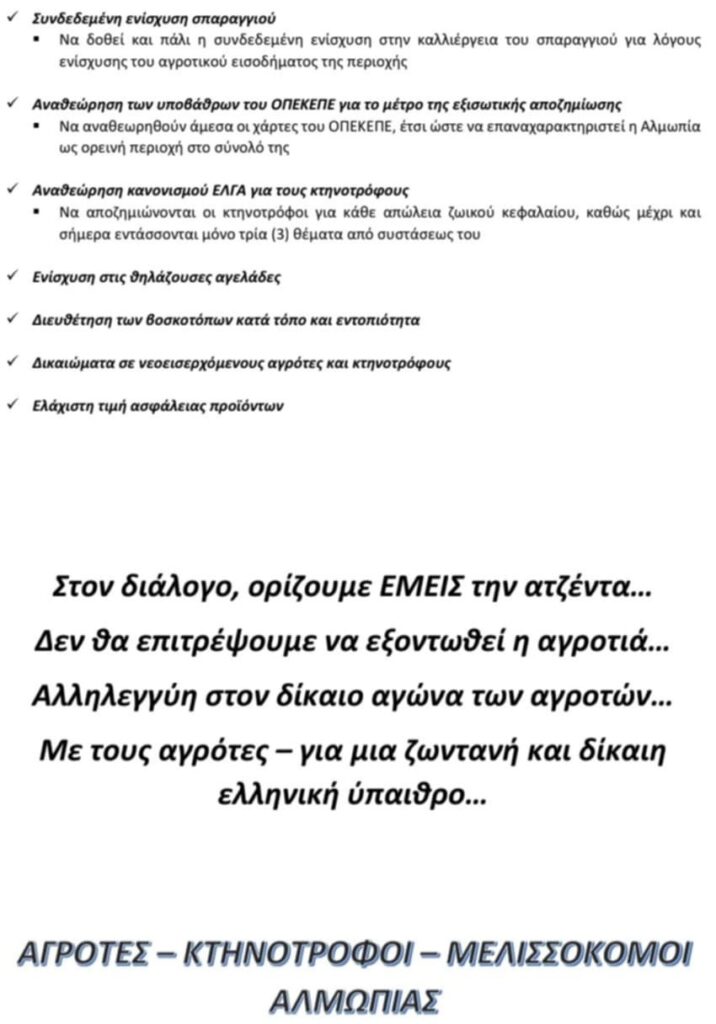 Σε κλίμα έντασης αλλά και αποφασιστικότητας, οι αγρότες, κτηνοτρόφοι και μελισσοκόμοι της Αλμωπίας προχωρούν σε δημόσια παρέμβαση, καταθέτοντας αναλυτικά τα αιτήματά τους προς την πολιτεία.