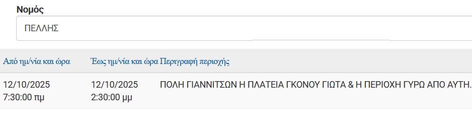 Σύμφωνα με ανακοίνωση της ΔΕΔΔΗΕ Α.Ε, για λόγους βελτίωσης και συντήρησης του δικτύου θα διακοπεί η παροχή ηλεκτρικού ρεύματος στις παρακάτω περιοχές: