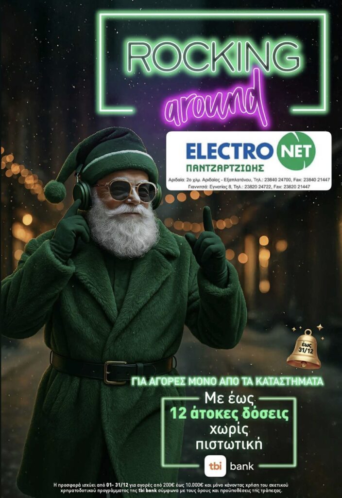 Η ELECTRONET Παντζαρτζίδης φέρνει φέτος τα Χριστούγεννα… άλλον αέρα! Με τον πιο «ροκ» Άγιο Βασίλη και με προσφορές που ανεβάζουν την ένταση, έχετε τώρα τη δυνατότητα να αποκτήσετε ό,τι χρειάζεστε με έως 12 άτοκες δόσεις χωρίς χρήση πιστωτικής κάρτας, αποκλειστικά για αγορές στα καταστήματά μας.