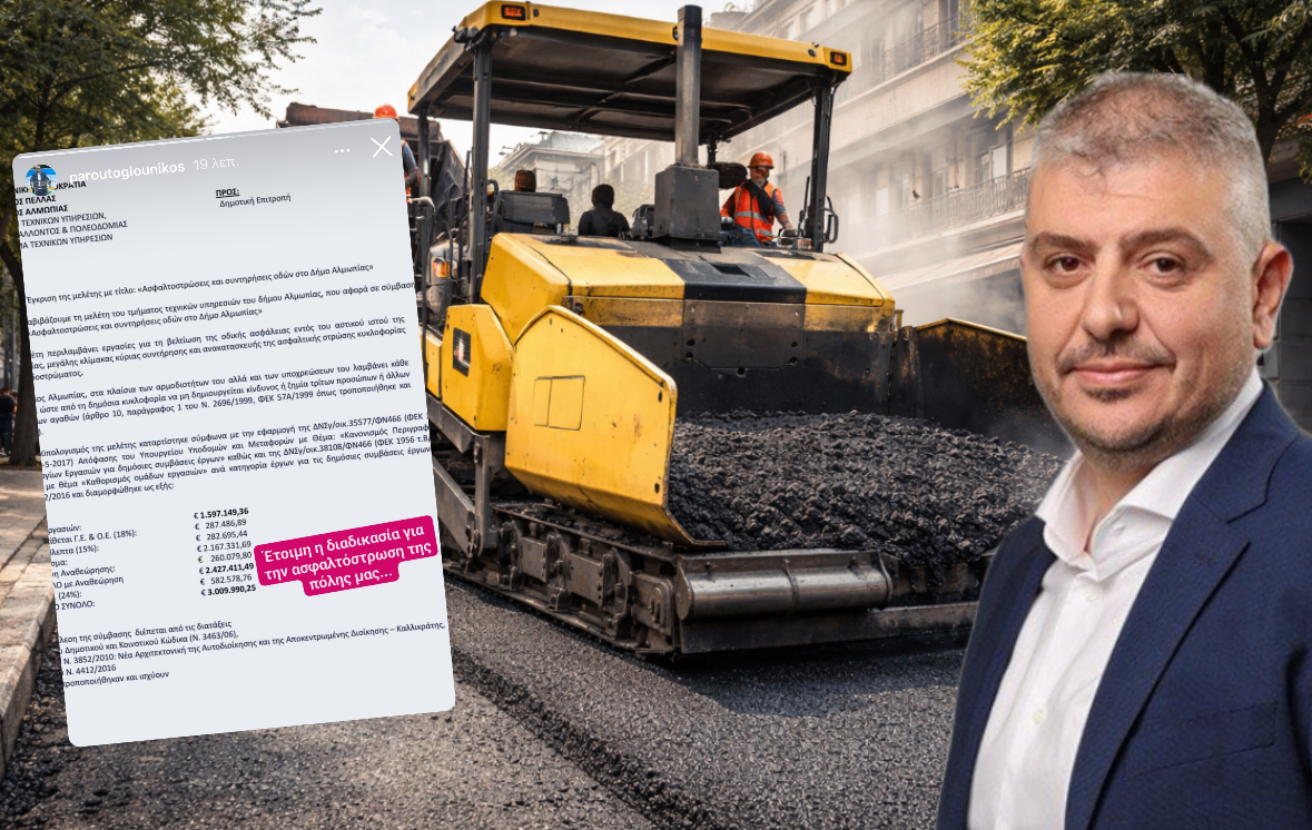 «Έτοιμη η διαδικασία για την ασφαλτόστρωση της πόλης μας», σημειώνει χαρακτηριστικά ο Δήμαρχος, υπογραμμίζοντας τη σημασία της συγκεκριμένης παρέμβασης για τον Δήμο Αλμωπίας.