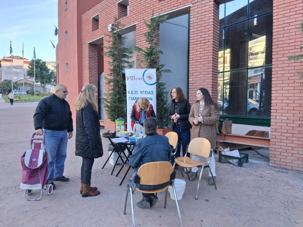 Η δράση πραγματοποιήθηκε μπροστά στο Δημαρχείο στα Γιαννιτσά, όπου το προσωπικό των κοινωνικών και υγειονομικών δομών υποδέχτηκε τους δημότες, πραγματοποίησε μετρήσεις σακχάρου και παρείχε εξατομικευμένη συμβουλευτική σχετικά με τους παράγοντες κινδύνου, τη σημασία της πρόληψης και τις απαραίτητες ενέργειες για την προάσπιση της υγείας.