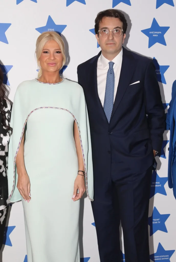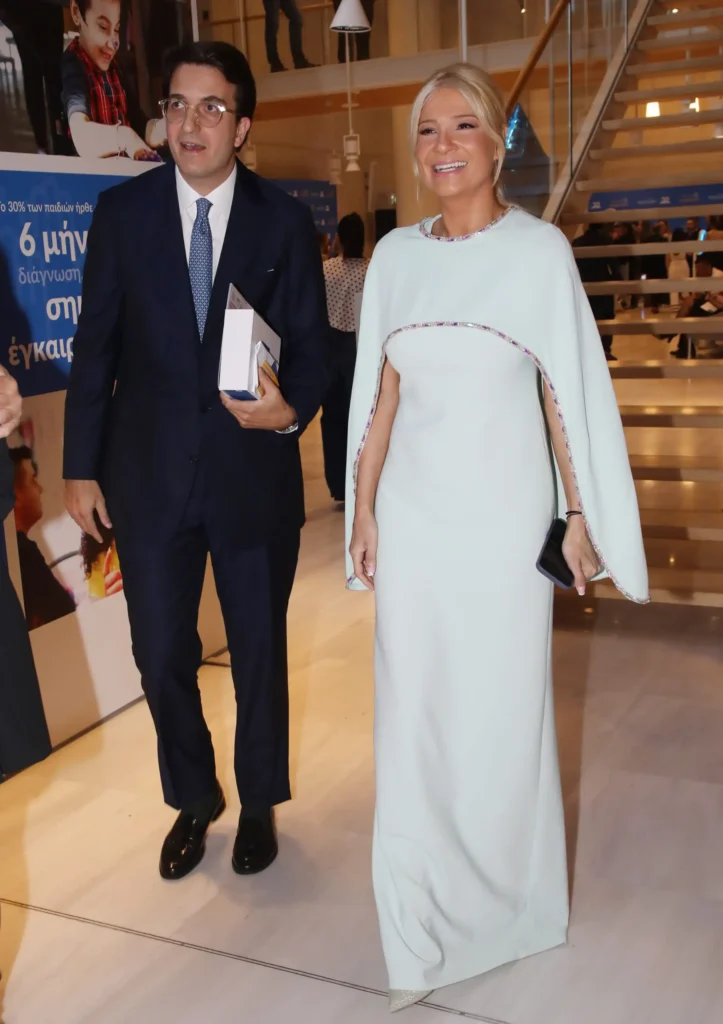 Η Φαίη Σκορδά που είναι πρέσβειρα του «Make A Wish» επέλεξε να φορέσει ένα σιέλ μακρύ φόρεμα που ταίριαζε υπέροχα στη σιλουέτα της, ενώ ο αγαπημένος της φόρεσε ένα σκούρο μπλε κοστούμι.