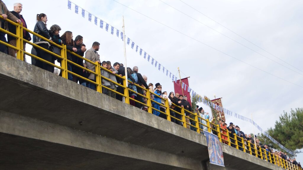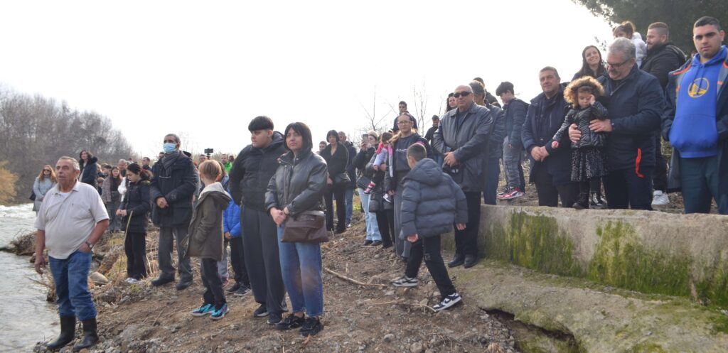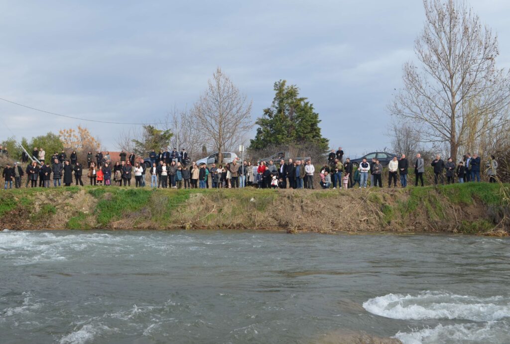 Η πομπή που σχηματίστηκε με τη Δημοτική Φιλαρμονική, τα Ιερά Σύμβολα, τους Σεβαστούς Πατέρες, τους Ψάλτες και τους πιστούς έφθασε στον προκαθορισμένο χώρο. Μετά το ψάλσιμο του απολυτίκιου «Εν Ιορδάνη βαπτιζομένου σου Κύριε…» ο Σταυρός από τα χέρια των Πατέρων καταδύθηκε στα νερά του ποταμού και μετά από λίγο αναδύθηκε από τον Πέτρο Στογιάννη που δέχθηκε τις ευλογίες των Ιερέων και τα συγχαρητήρια των πιστών.