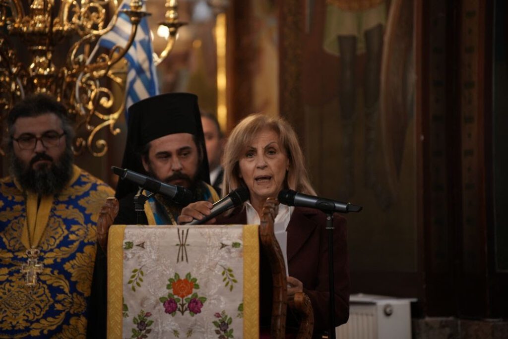 Συνοδευόμενη από τον Αντιπεριφερειάρχη Πέλλας Ιορδάνη Τζαμτζή, η κ. Αηδονά παρακολούθησε τη Δοξολογία στον Ιερό Μητροπολιτικό Ναό της Έδεσσας, χοροστατούντος του Μητροπολίτη Εδέσσης, Πέλλης και Αλμωπίας Ιωήλ, και εκφώνησε τον πανηγυρικό της ημέρας. Στη συνέχεια, παρέστη στην επιμνημόσυνη δέηση στο Ηρώον της πόλης και παρακολούθησε την παρέλαση αναπήρων πολέμου, μαθητών και μαθητριών, προσκόπων – οδηγών και τμημάτων των Ενόπλων Δυνάμεων.