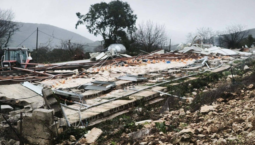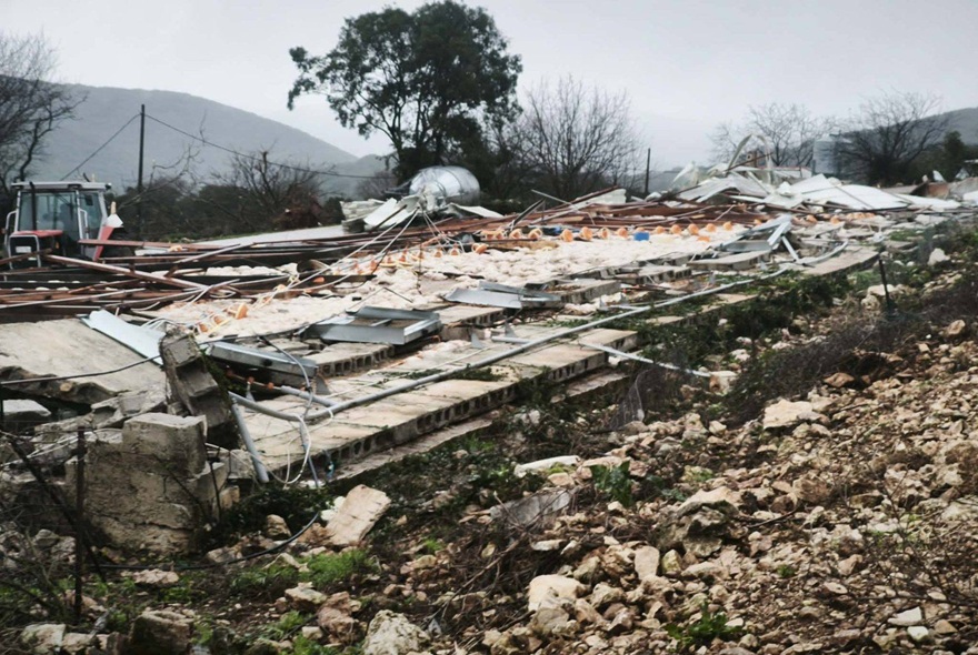 Η δύναμη του αέρα ξήλωσε τα πάντα. Εκεί που ήταν η επιχείρηση ένας σωρός από υλικά. Η καταστροφή είναι ολοσχερής ενώ ζημιές έχουν προκληθεί και σε άλλα κτίρια.