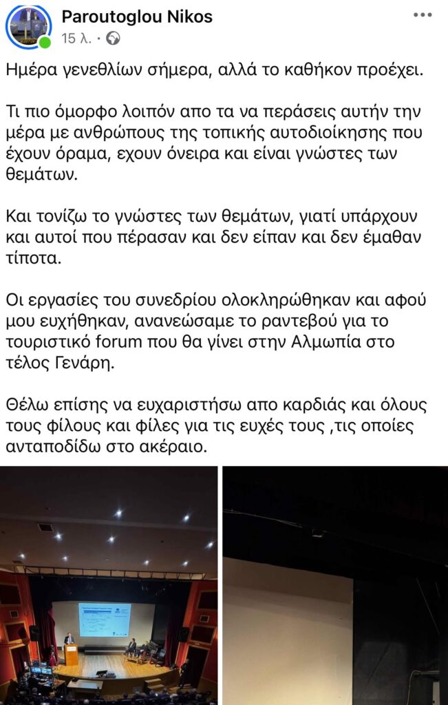 Ωστόσο, το σημείο που ξεχώρισε ήταν η έμμεση αλλά σαφής αιχμή προς όσους στο παρελθόν βρέθηκαν σε θέσεις ευθύνης, χωρίς – όπως υπονοεί – να αφήσουν έργο ή να εμπλουτίσουν τις γνώσεις τους: «Και τονίζω το “γνώστες των θεμάτων”, γιατί υπάρχουν και αυτοί που πέρασαν και δεν είπαν και δεν έμαθαν τίποτα», έγραψε ο Δήμαρχος.