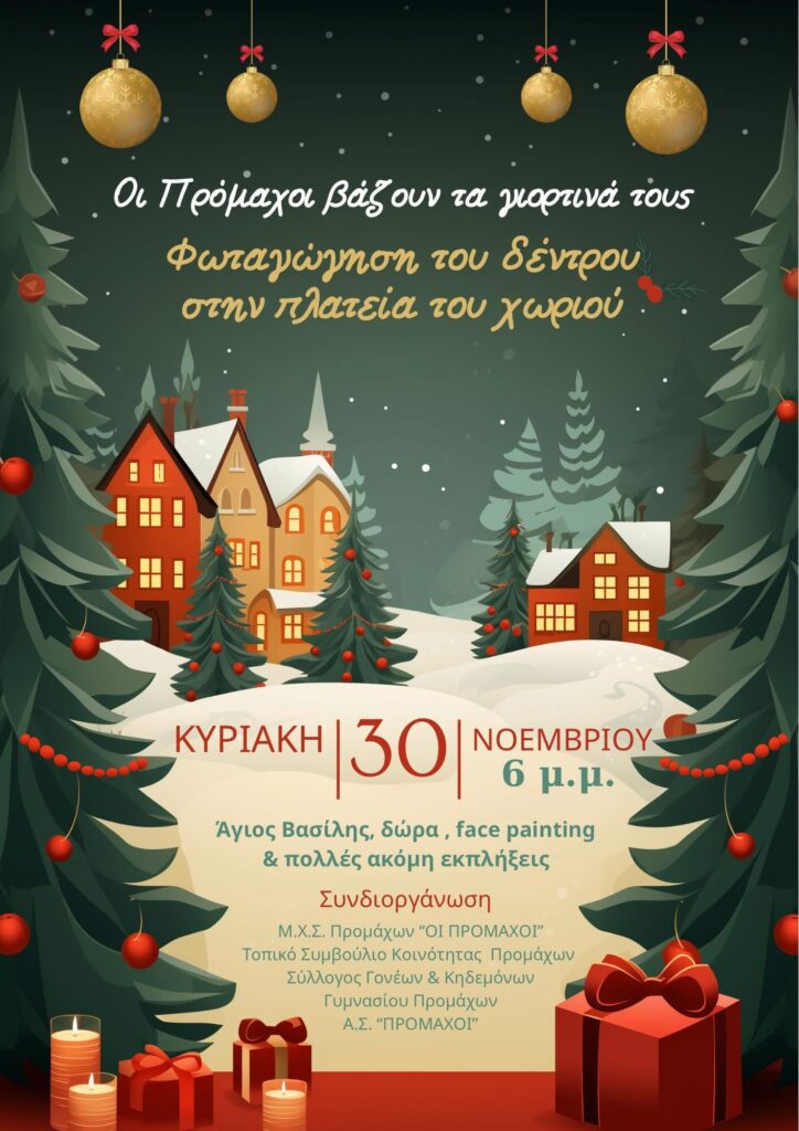 Την Κυριακή 30 Νοεμβρίου 2025, σας περιμένουμε όλους στην πλατεία του χωριού, στις 6:00 μ.μ., για τη μαγική φωταγώγηση του χριστουγεννιάτικου δέντρου!