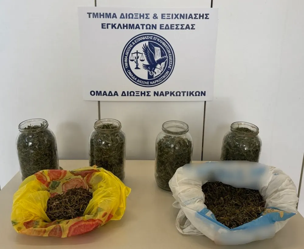 Πιο αναλυτικά, ο ηλικιωμένος έκρυβε δύο συσκευασίες με ακατέργαστη κάνναβη, συνολικού βάρους 157 γραμμαρίων και τέσσερα γυάλινα βάζα με ακατέργαστη κάνναβη, συνολικού βάρους 473 γραμμαρίων, τα οποία και κατασχέθηκαν.