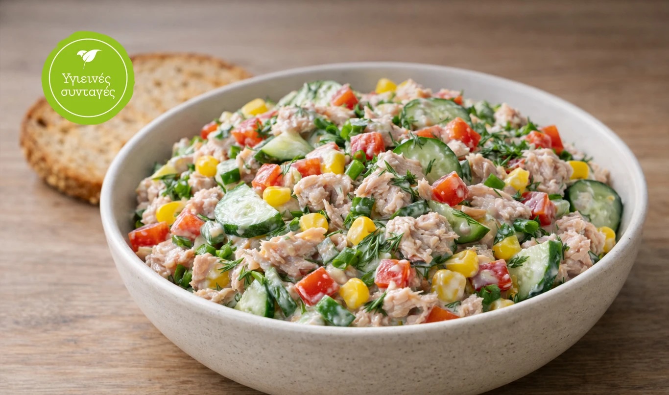 Μια σαλάτα με τόνο, φρέσκα λαχανικά και γιαούρτι αποτελεί μια ιδιαίτερα ισορροπημένη επιλογή, με σχετικά χαμηλή θερμιδική επιβάρυνση. Ο τόνος προσφέρει πρωτεΐνη υψηλής βιολογικής αξίας, καθώς και ωμέγα-3 λιπαρά οξέα, τα οποία συμβάλλουν στην προστασία της καρδιαγγειακής υγείας.