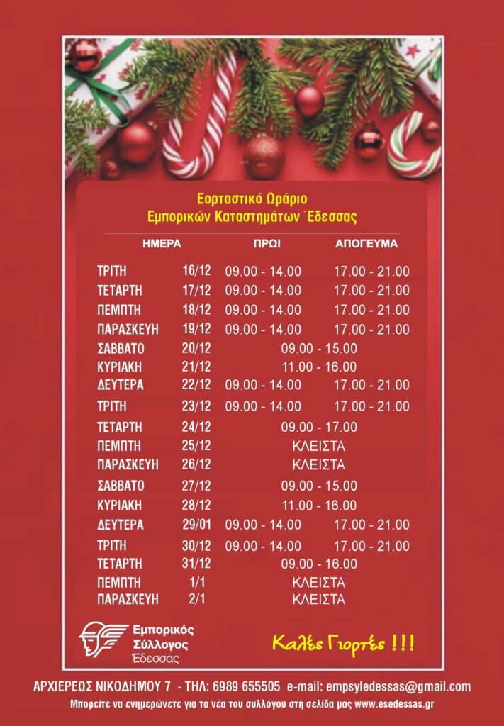 Από αυτή την εβδομάδα τίθεται σε ισχύ το εορταστικό ωράριο λειτουργίας των καταστημάτων στον Νομό Πέλλας, σηματοδοτώντας την επίσημη έναρξη της εορταστικής περιόδου στην τοπική αγορά.