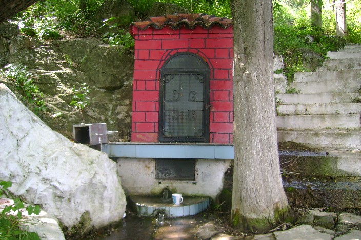 Ας σημειώσουμε εδώ πως στο μαγευτικό τοπίο που βρίσκεται το εξωκλήσι και η Πέτρα, υπάρχει στη ρίζα του απέναντι θεόρατου βράχου και το Αγίασμα. Το νερό που πηγάζει μέσα από τα σπλάχνα του και τρέχει μέρα-νύχτα ασταμάτητα, προσφέρει τη σωματική και πνευματική κάθαρση που αναζητούν οι πιστοί. Πολλοί απ` αυτούς, κυρίως άρρωστοι που θέλουν να θεραπευτούν, κρεμούν κλωστές, κομμάτια υφασμάτων, μαντήλια κ.λ.π. (τα λεγόμενα τζάτζαλα).